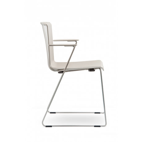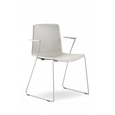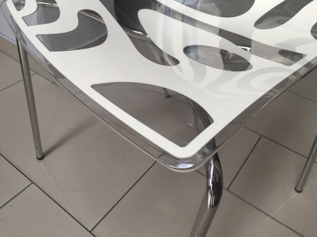 Stuhl weiß verchromt, Kufenstuhl mit Armlehne weiß stapelbar