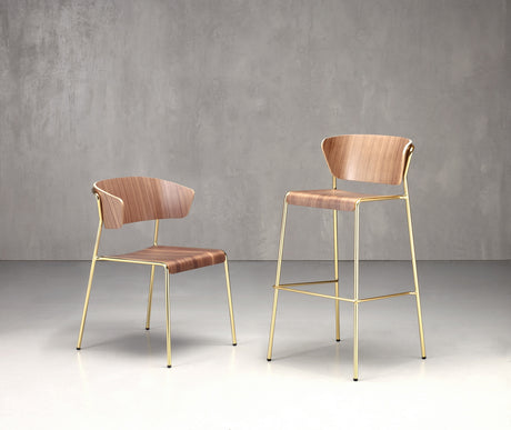 Design Barstuhl gold, Stuhl stapelbar, Barhocker, Holz, Natur, Tresenstuhl