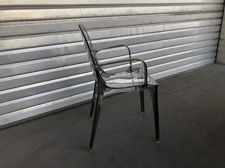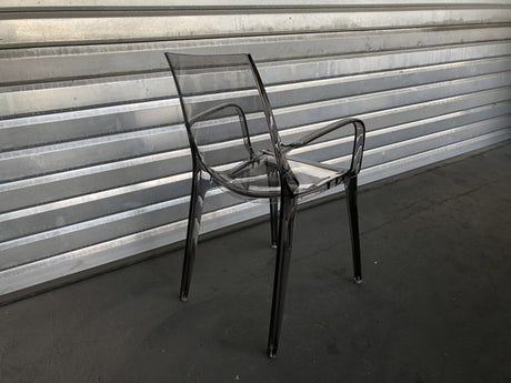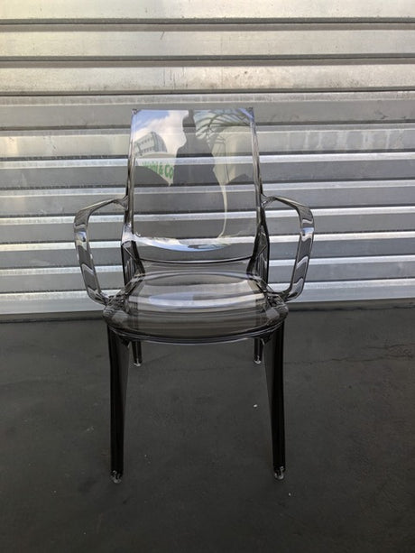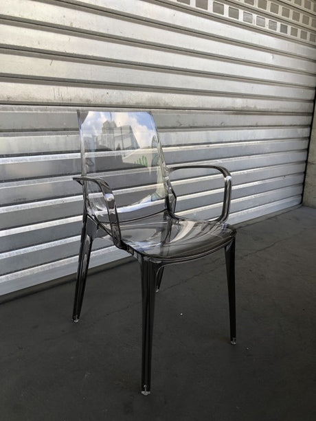 Design Stuhl grau transparent, Stuhl stapelbar , Stuhl mit Armlehne grau