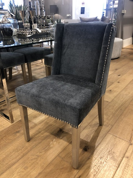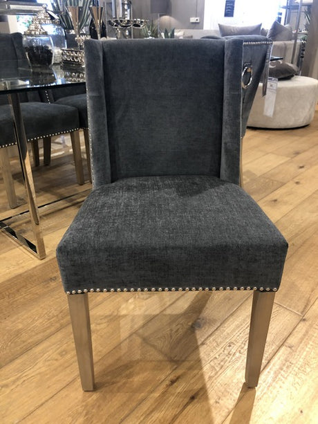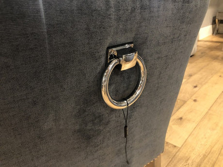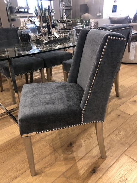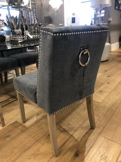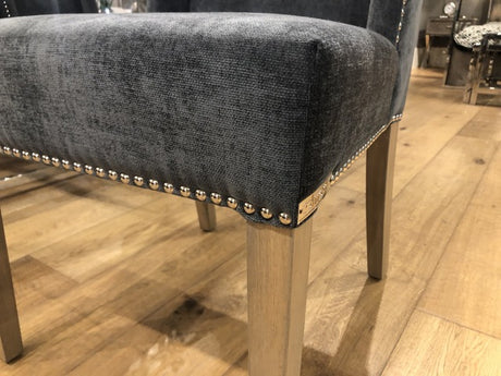 Stuhl grau gepolstert Landhaus, Stuhl mit Ziernägel, Stuhl mit Ring