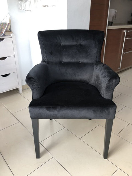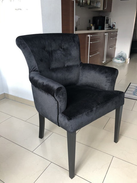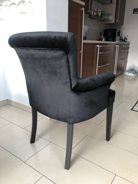 Gepolsterter Stuhl schwarz, Stuhl mit Armlehne, Stuhl gepolstert schwarz