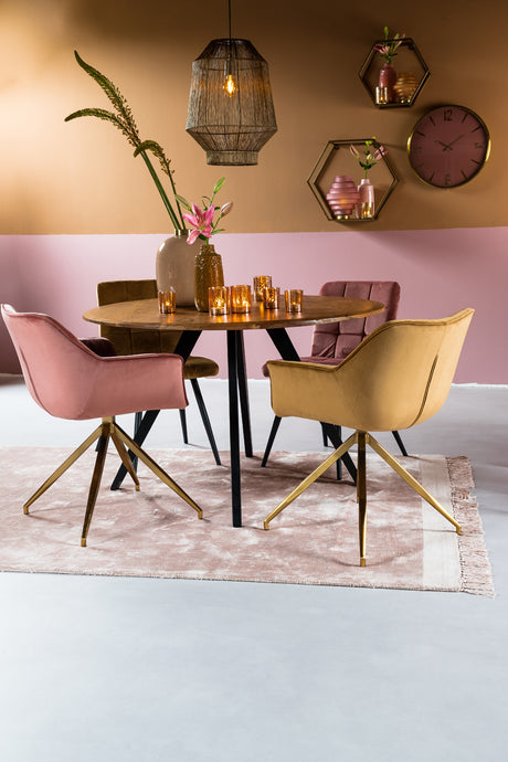 Stuhl ocker gelb, Stuhl mit Armlehne, Stuhl gepolstert Gestell schwarz