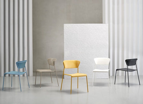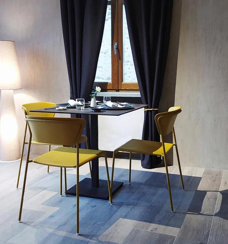Stuhl gelb, gelber Stuhl stapelbar, Stuhl Metall Gestell gelb