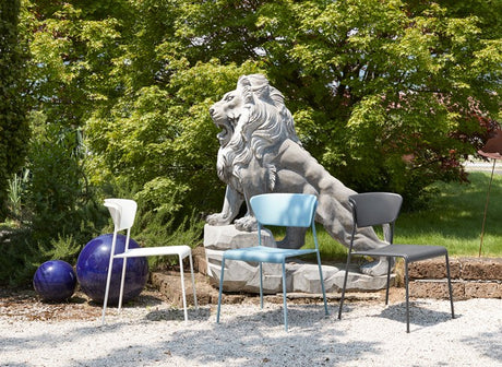 Stuhl blau, Stuhl Metall Gestell blau, blauer Stuhl stapelbar