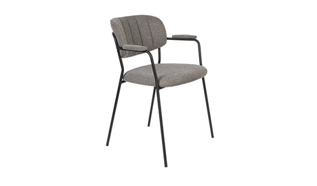 Stuhl grau Metallgestell schwarz, gepolstert, Armlehne