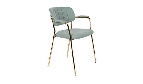Stuhl hell grün Metallgestell gold, gepolstert, Armlehne