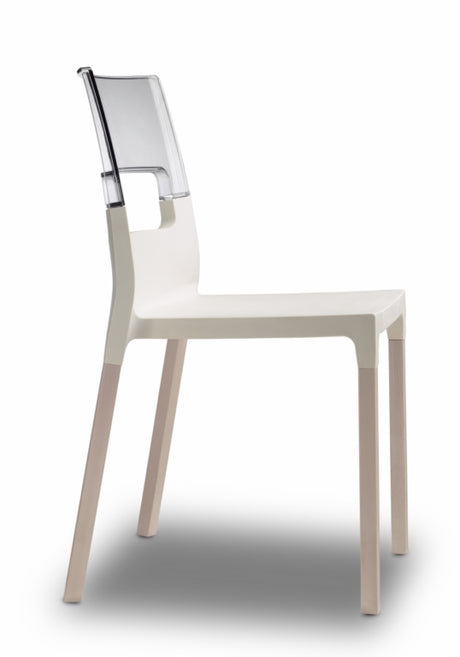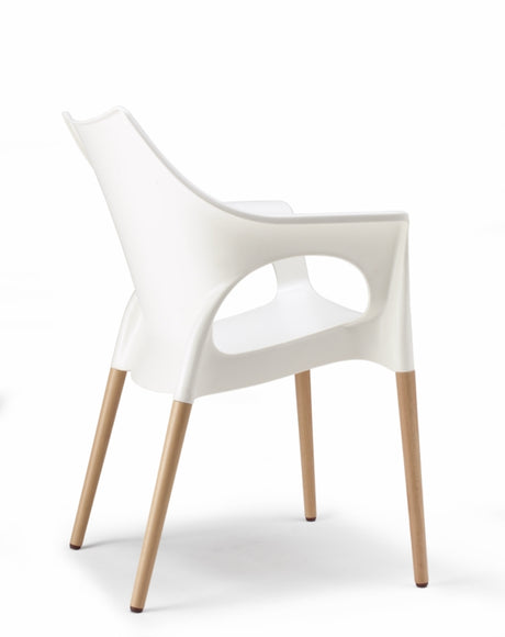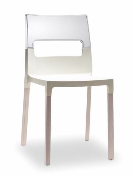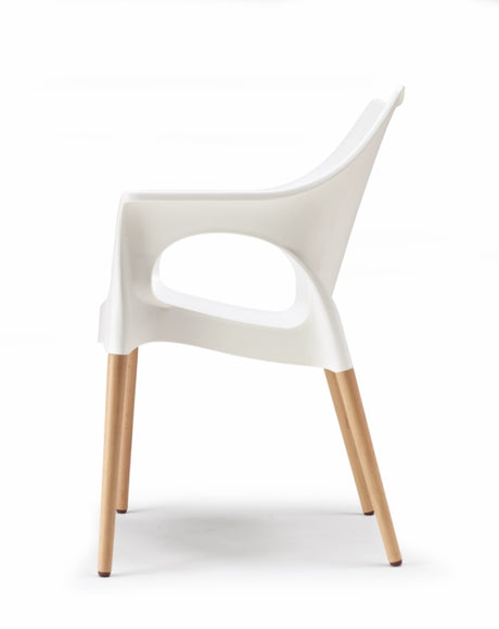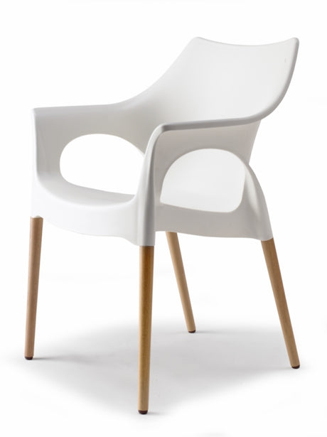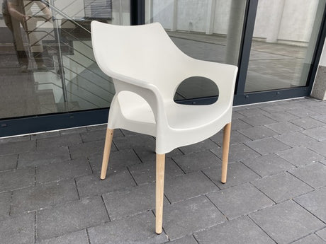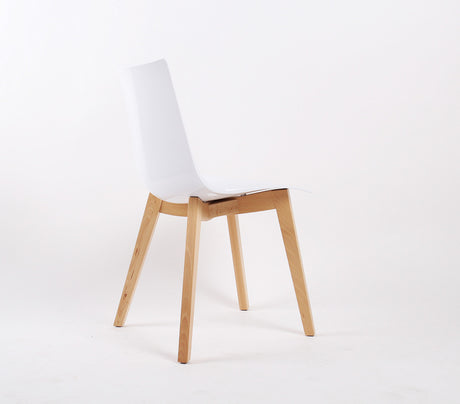 Design Stuhl Holz Buche Kunststoff Sitz weiß