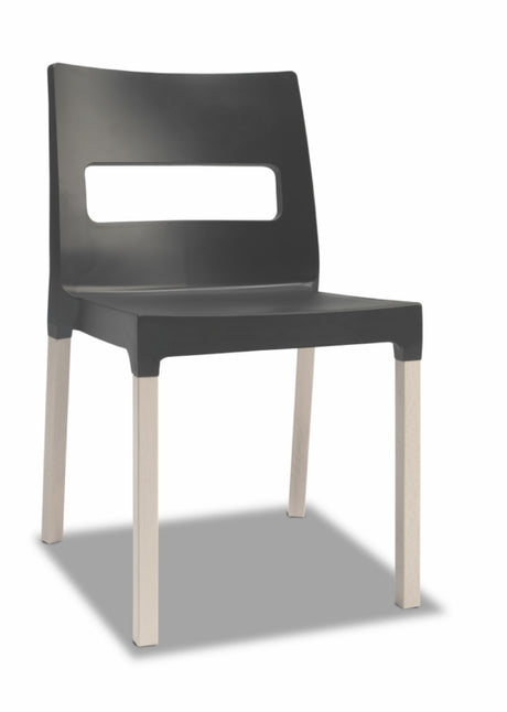 Stuhl grau, Stuhl mit Holzstuhlbeinen, Design Stuhl Holz Natural