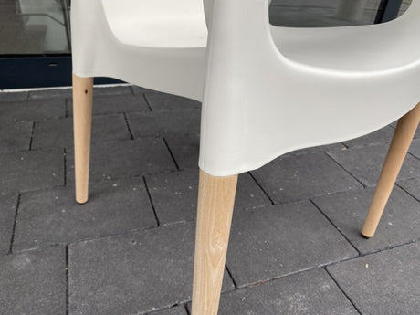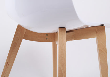 Design Stuhl weiß mit Holzfüßen, Stuhl Holz Kunststoff