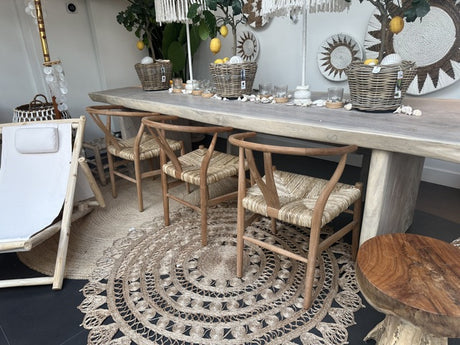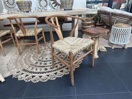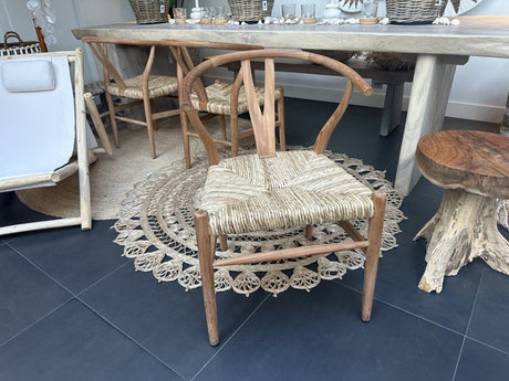Stuhl Naturholz Holz-Rattan mit Armlehne, Holz Esszimmerstuhl braun