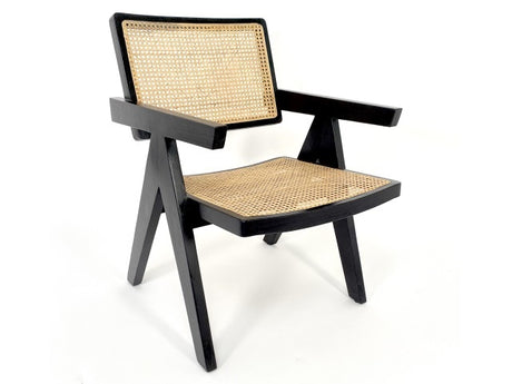 Stuhl schwarz Holz-Rattan mit Armlehne, Esszimmerstuhl schwarz Rattan