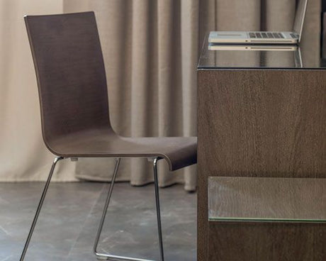 Design Stuhl mit Holzbeinen und Kunststoff Sitzschale