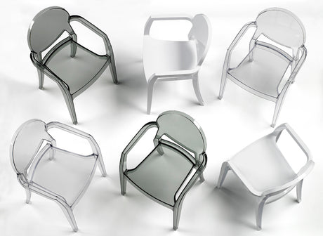 Design Stuhl modern klassisch mit Armlehne transparent grau