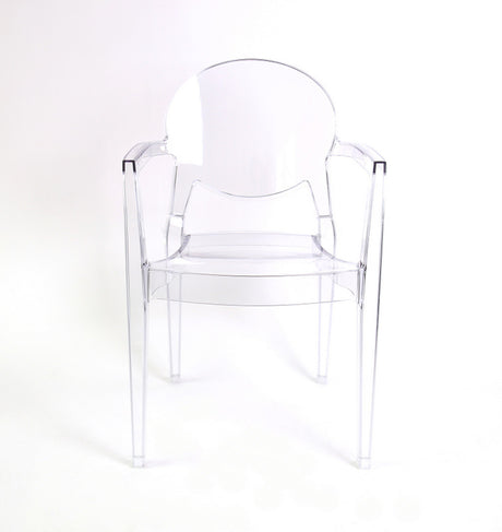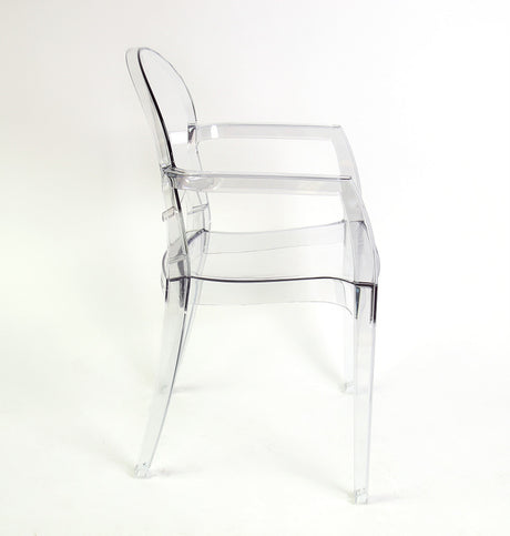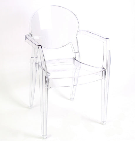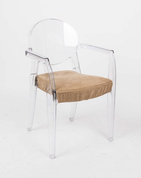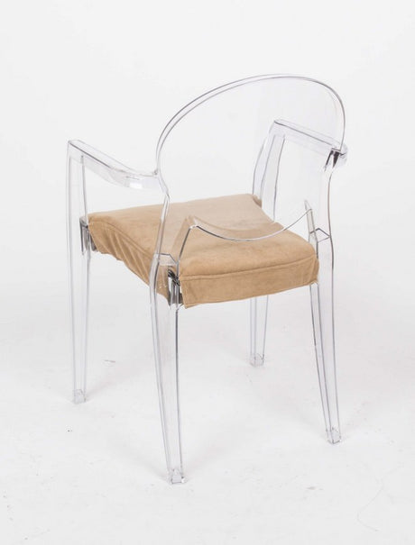 Design Stuhl mit Armlehne transparent mit Sitzkissen