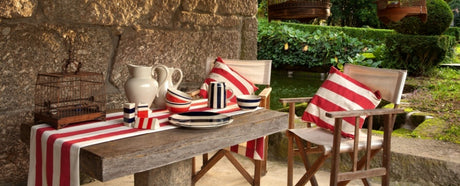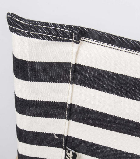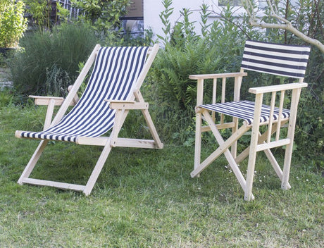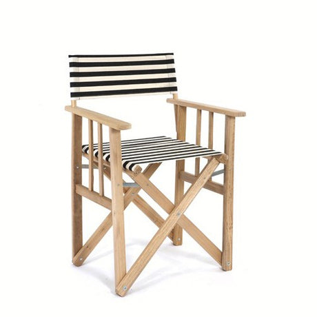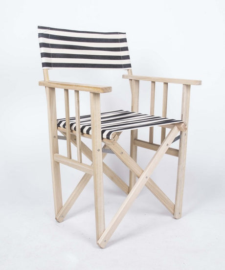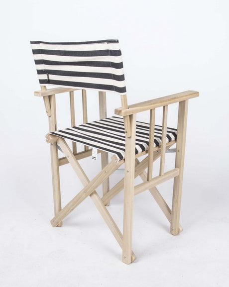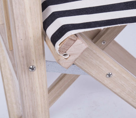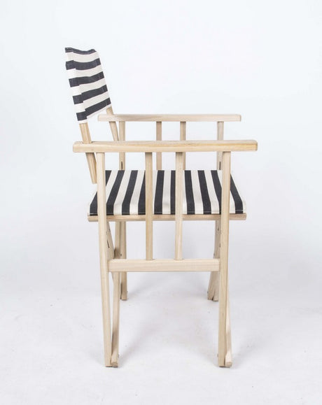 Regiestuhl aus Massivholz und gestreiftem Textilstoff, Gartenstuhl, Farbe schwarz-weiß