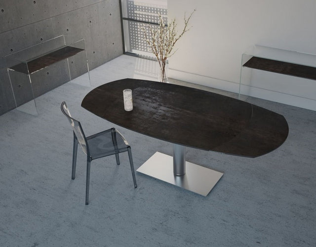 Der Tisch ist ausziehbar mit einem ausgeklügelten Ausziehmechanismus. Zwei integrierte Auszüge.