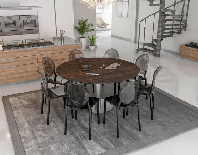 Ausziehtisch rund braun, Tisch Keramik-Tischplatte, runder Esstisch Keramikplatte, Esstisch braun rund ausziehbar, Durchmesser 150 cm