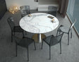 Ausziehtisch weiß, Tisch Keramik-Tischplatte, runder Esstisch weiß Keramikplatte, Esstisch rund Edelstahl Tischfuß, Durchmesser 135 cm
