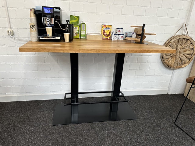 Bartisch Eiche Massivholz, Bartisch Metallgestell Tischplatte Eiche, Breite 180 cm ist auf Lager und wird versandt, sobald es wieder verfügbar ist
