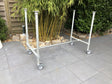 Bartisch-Gestell aus Rohren, Tischgestell auf Rollen Industriedesign, Bartisch-Gestell Rohrgestell Metall, Maße 144 x 107 cm