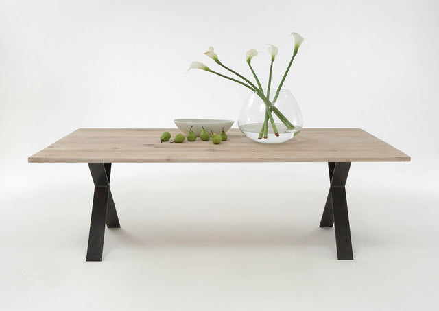 Esstisch aus massiv Eiche, Tisch mit einem Gestell aus Metall, Maße 220 x 100 cm