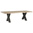 Die Tischplatte gibt es in vier Farben: white wasch, smoke brown, Natural und stone grey. Abgebildet ist die Farbe; Natural.
