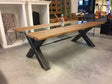 Esstisch Eiche Tischplatte, Tisch Glas-Massivholz Tischplatte Industriedesign, Tischgestell Metall, Maße 220 x 100 cm ist auf Lager und wird versandt, sobald es wieder verfügbar ist