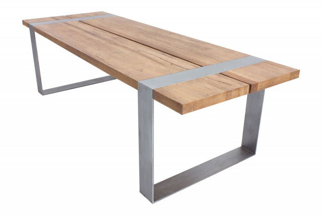 Esstisch massiv Eiche, Tisch im Industriedesign mit einem Gestell aus Metall, Maße 280 x 100 cm
