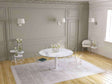 Der Esstisch ist einzigartig mit seinem patentierten Schließsystem. In geschlossener Position liegen die beiden Auszüge unterhalb der Tischplatte. Durch ein einfaches Drehen an der Hauptplatte werden die Auszüge ausgefahren und Sie erhalten einen runden Esstisch. Der runde Tisch ist in verschiedenen Keramik- und Gestell-Ausführungen erhältlich mit einem Durchmesser von 135 oder 150 cm. Hier präsentiert mit einer 3 mm starken Keramikplatte in weißer Marmoroptik verklebt auf 8 mm starkem Glas und einem matt weiß lackiertem Stahlgestell, was ihm eine gute Strapazierfähigkeit für den täglichen Gebrauch garantiert.