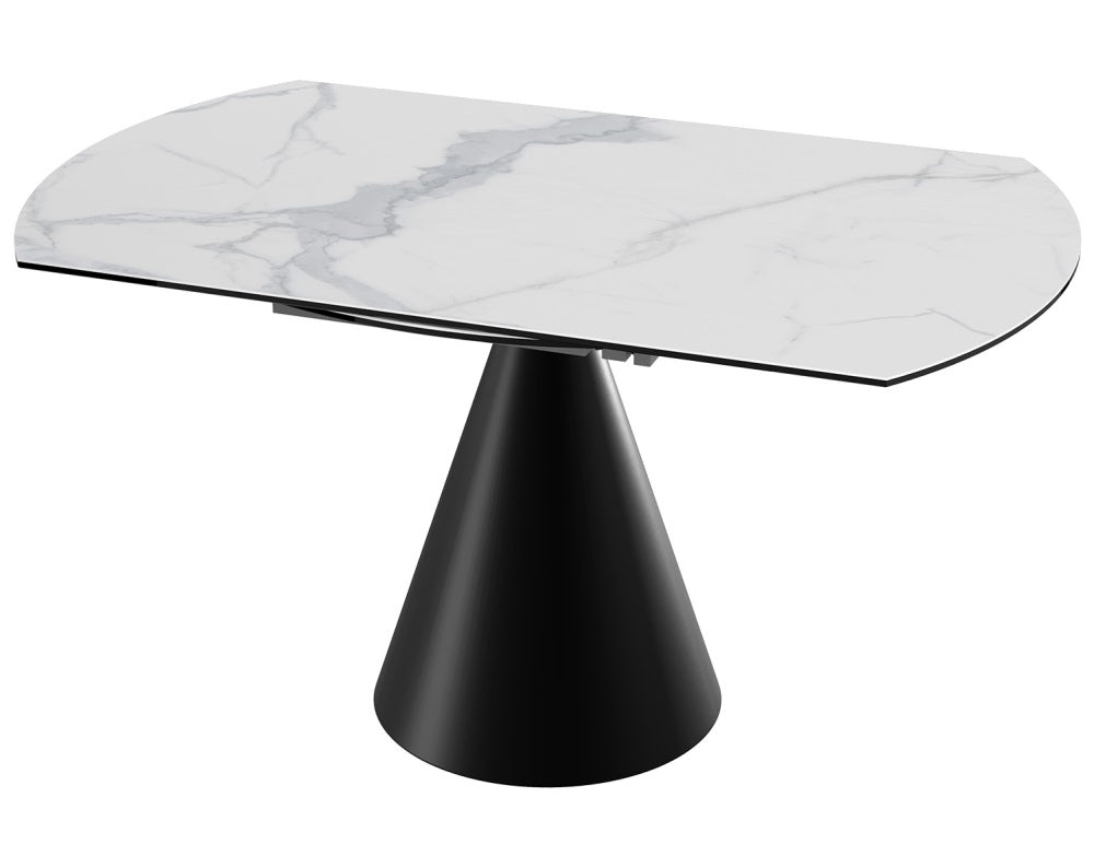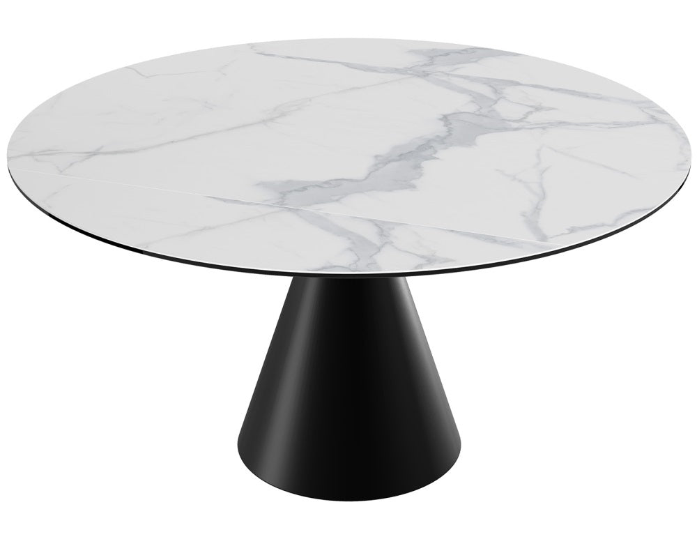 Esstisch rund Keramik-Tischplatte rund, runder Tisch Keramik Tischplatte, Tisch weiß-grau rund, Durchmesser 150 cm