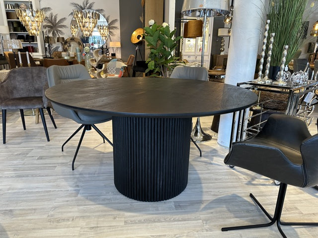 Esstisch schwarz rund, Tisch rund schwarz Massivholz, runder Tisch Tischplatte Massivholz, Durchmesser 140 cm