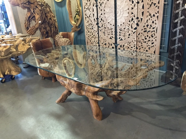 Esstisch Wurzelholz, Tisch Unikat Massivholz und Glas ist auf Lager und wird versandt, sobald es wieder verfügbar ist