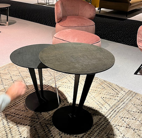 Beistelltisch braun rund Keramik Tischplatte, runder Beistelltisch Keramik Beschichtung, Höhe 50 cm
