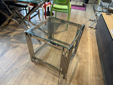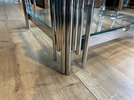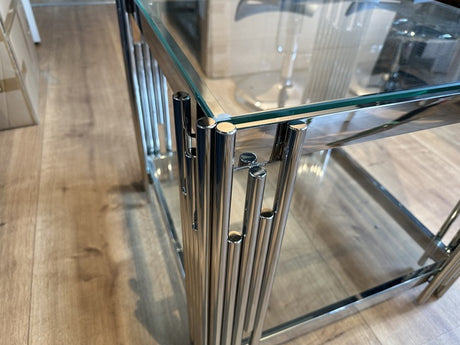 Beistelltisch Silber Glas, Glastisch Silber, Beistelltisch verchromt Glas, Maße 55x55 cm