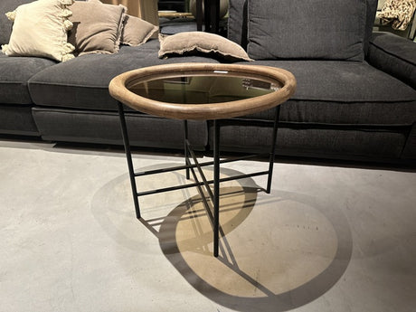 Beistelltisch Glas-Holz, Beistelltisch Glas, Durchmesser 50-61 cm