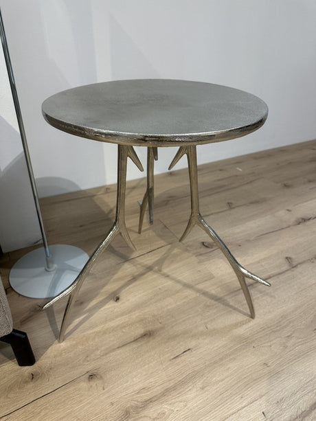 Beistelltisch Hirschgeweih-Beine, Beistelltisch Silber rund, Durchmesser 48 cm
