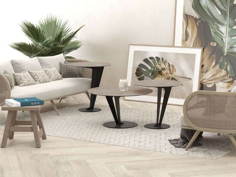 Beistelltisch grau rund Keramik Tischplatte, runder Beistelltisch Keramik Beschichtung, Höhe 50 cm