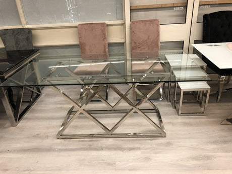 Glastisch Silber, Esstisch Glasplatte verchromtes Gestell, Tisch Glas verchromt, Breite 180 cm
