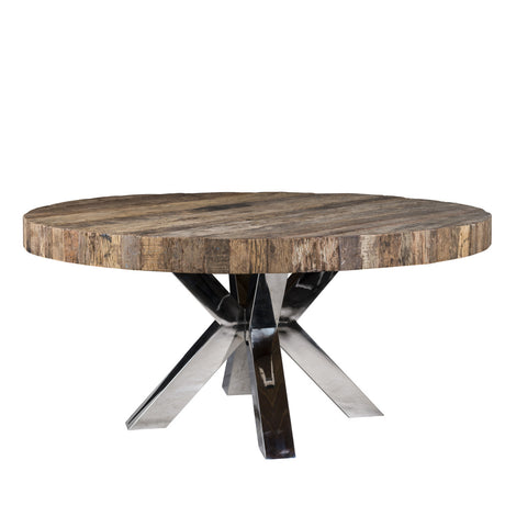 Tisch rund verchromtes Gestell, runder Esstisch Holz Metall, Tisch Metallgestell, Durchmesser 140 cm