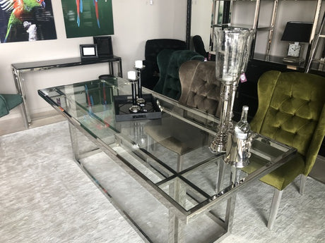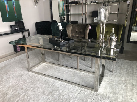 Esstisch verchromt Glasplatte, Tisch Silber Glas, Metall Tisch, Breite 220 cm