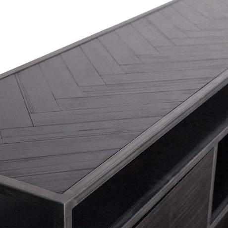 Esstisch schwarz Metall, Tisch schwarz Holz, Tisch Industriedesign schwarz, Breite 200 cm cm