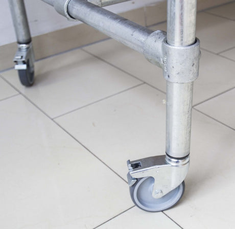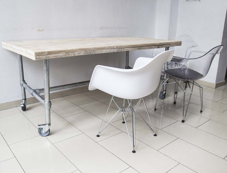 Tisch mit Rollen im Industriedesign, Esstisch mit Tischbeinen aus Metall, Länge 240 cm