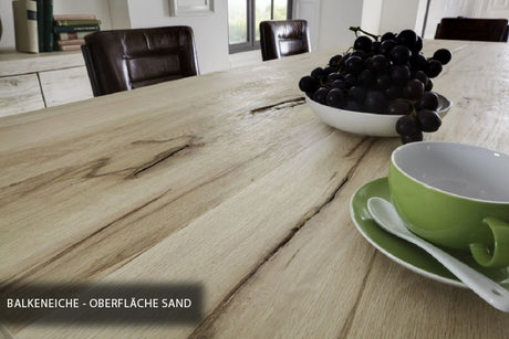 Esstisch Eiche-Natur Tischplatte, Tisch Eiche massiv, Tischbeine Metall schwarz, Maße 240 x 100 cm