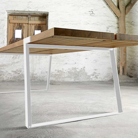Esstisch Eiche Tischplatte weiße Tischbeine, Tisch Massiv-Eiche Metall weiß, Maße 240 x 100 cm