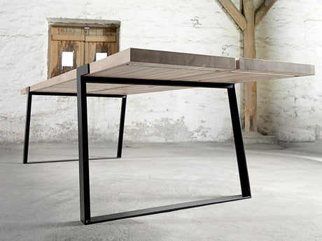 Esstisch Eiche-Natur Tischplatte, Tisch Massiv-Eiche Metall schwarz, Maße 290 x 100 cm
