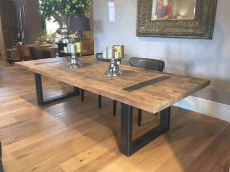 Esstisch Eiche Tischplatte, Industriedesign Tisch Massiv-Eiche Gestell Metall, Maße 300 x 100 cm