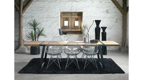 Esstisch Eiche Tischplatte, Industriedesign Tisch Massiv-Eiche Gestell Metall, Maße 280 x 100 cm