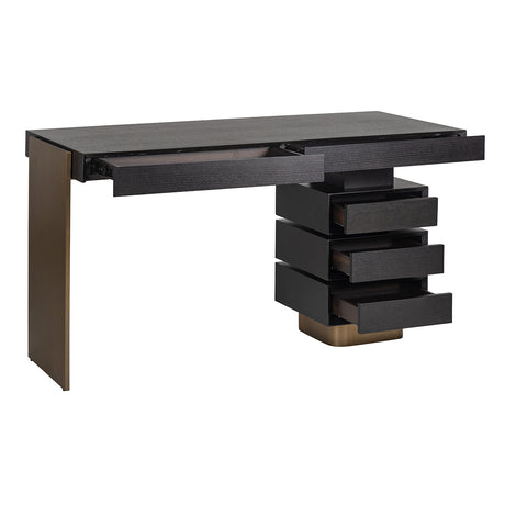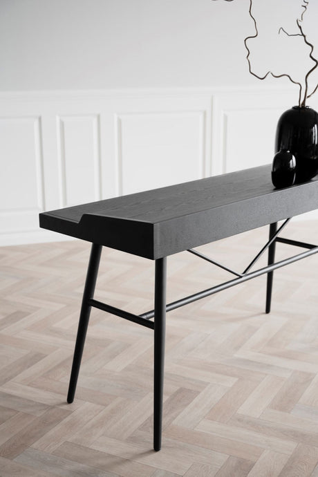 Schreibtisch schwarz Eiche, Tisch schwarz Holz Eiche, Breite 140 cm