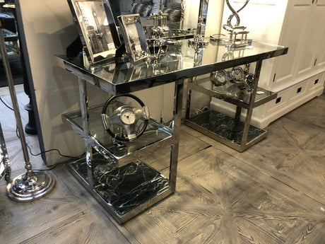 Glastisch verchromt, Schreibtisch verchromt, Tisch Glasplatten, Breite 150 cm