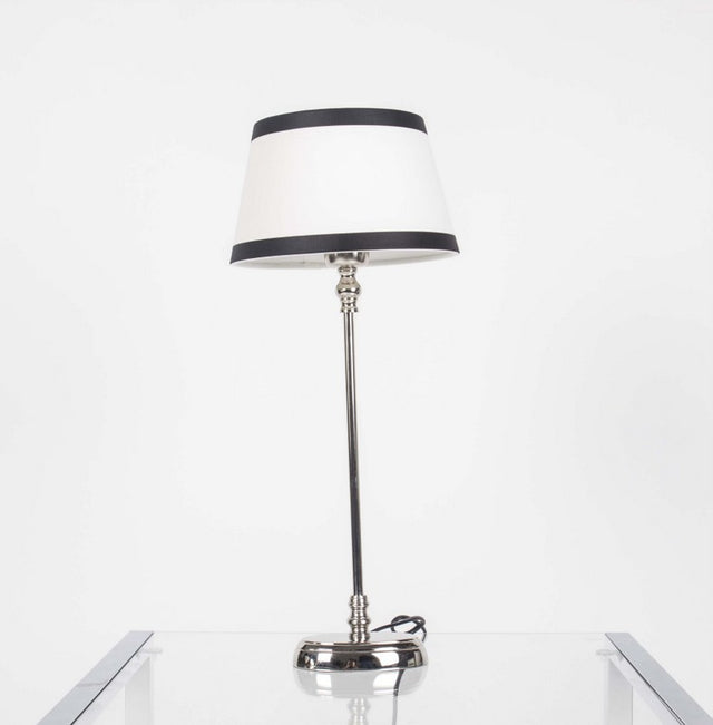 Tischlampe mit Lampenschirm / Weiß-Schwarz, Tischlampe verchromt, Höhe 50 cm ist auf Lager und wird versandt, sobald es wieder verfügbar ist